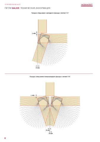 ПЕТЛИ МЕБЕЛЬНЫЕ SALICE ПЕТЛИ SALICE. ТЕХНИЧЕСКАЯ ИНФОРМАЦИЯ Процесс открывания накладного фасада с петлей 110 0 Процесс открывания полунакладного фасада с петлей 110 0 8